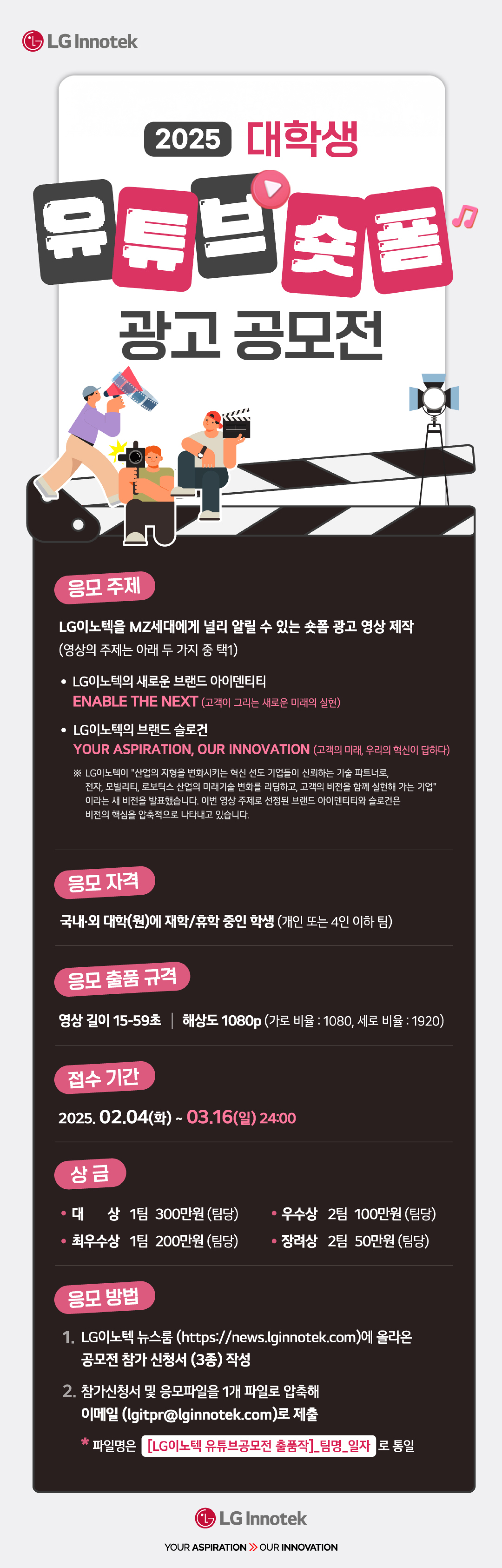 - 2. 참가신청서 및 응모파일을 1개 파일로 압축해 이메일(lgitpr@lginnotek.com)로 제출