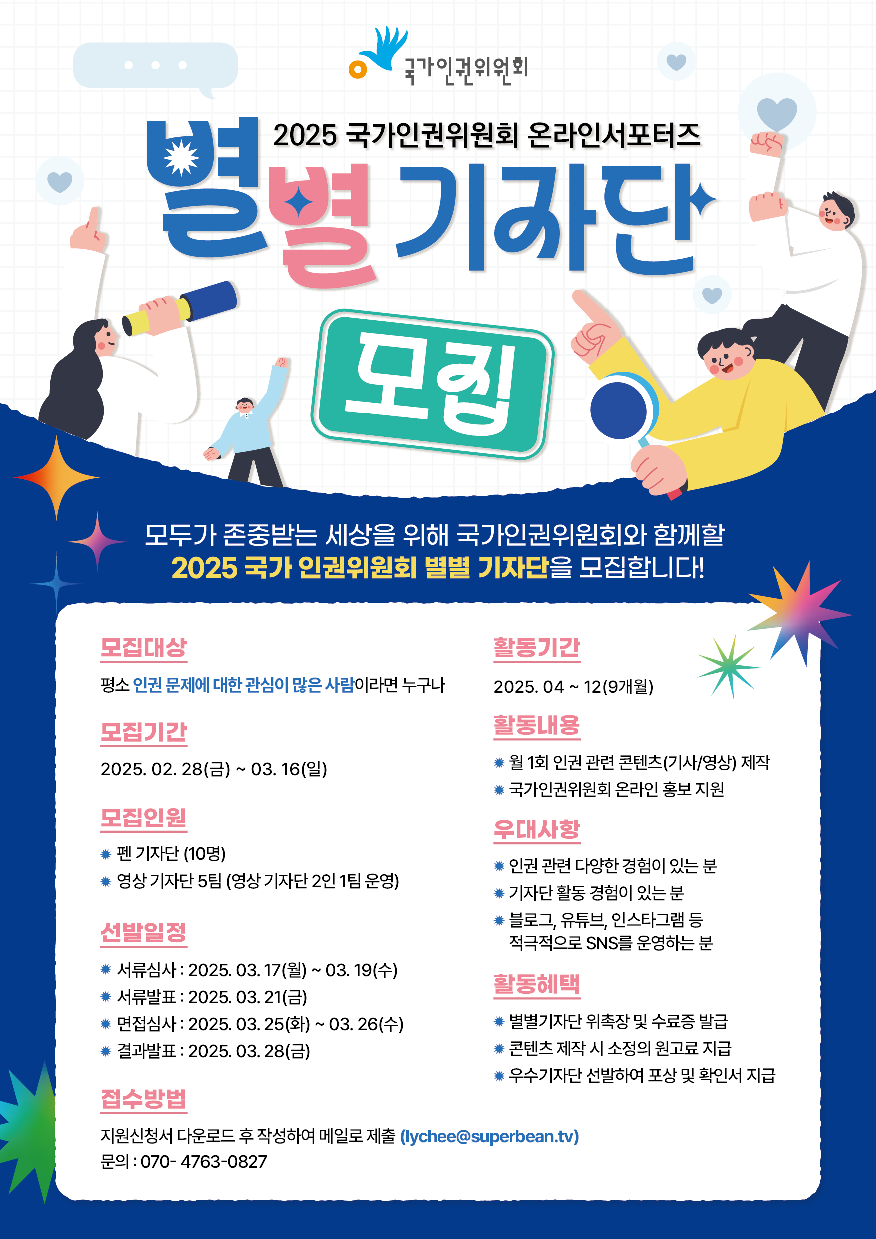 * 메일제목과 파일명 : 2025 국가인권위원회 별별기자단 신청서_이름(팀명)