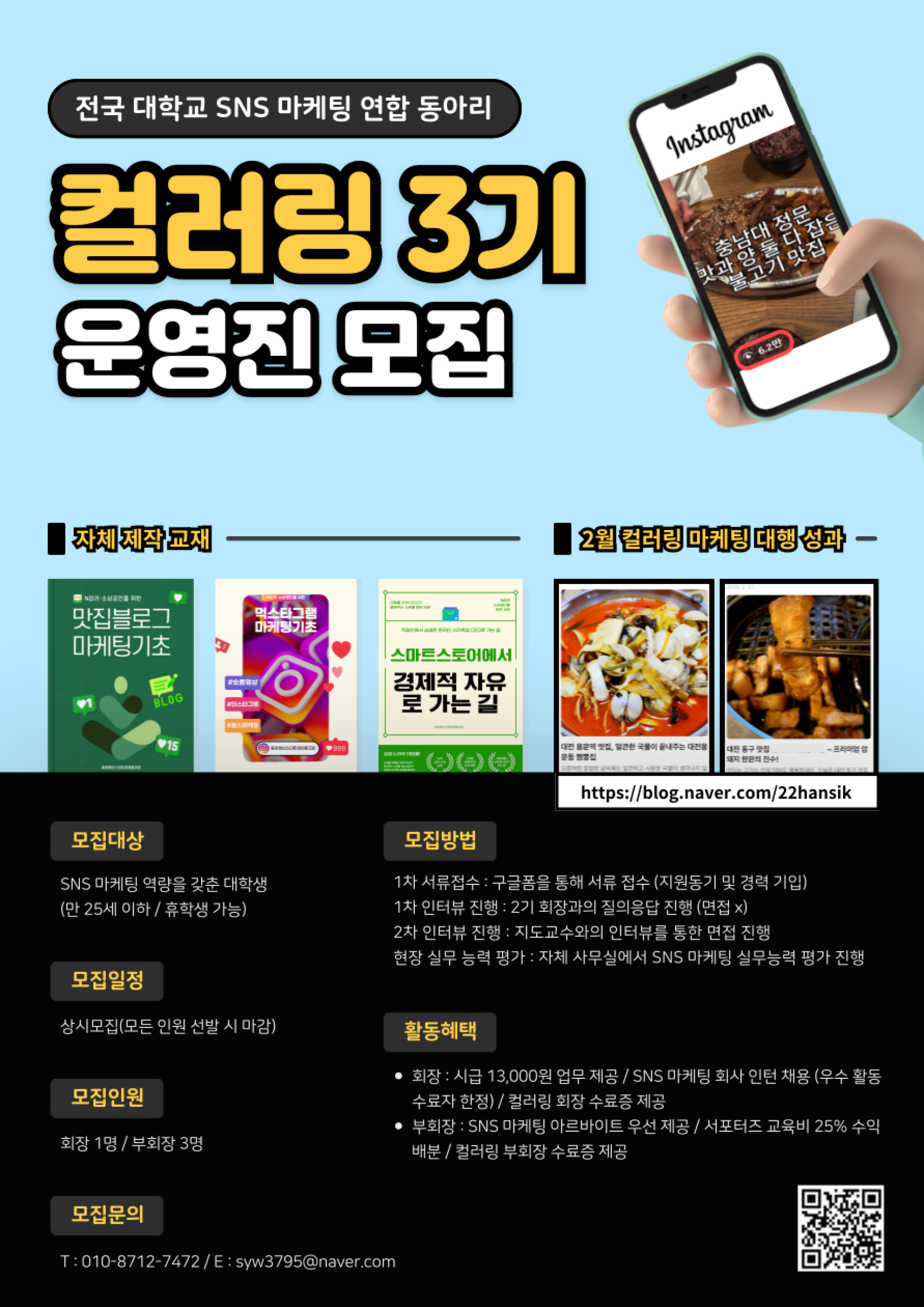 SNS 마케팅 역량을 갖춘 대학생 (만 25세 이하 / 휴학생 가능)