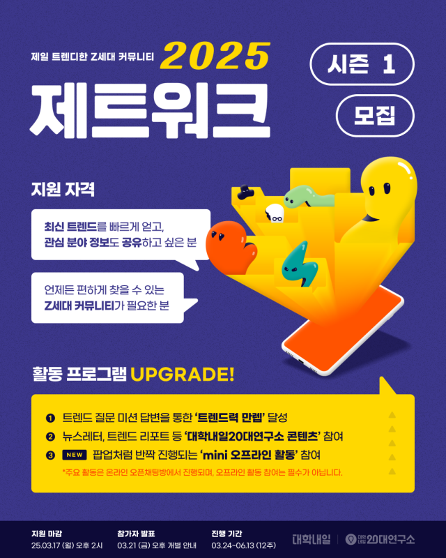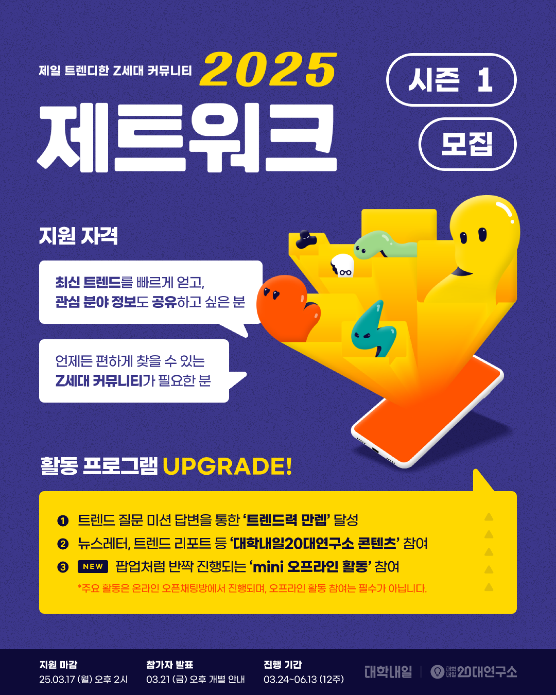 대학내일 '제일 트렌디한 Z세대 커뮤니티' 제트워크 2025 시즌 1 모집