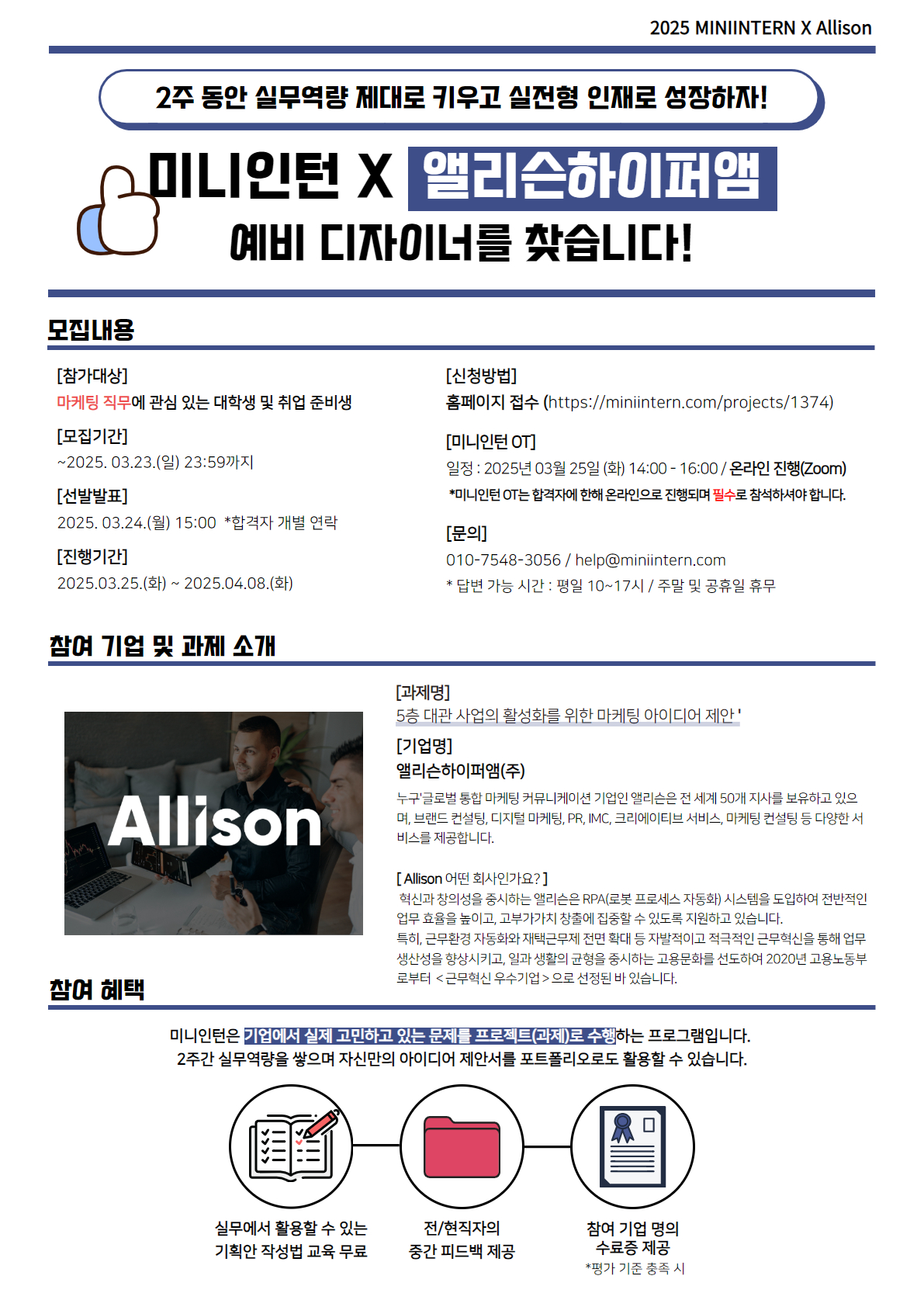 - 미니인턴 신청: [ 신청 바로가기 ] (클릭)