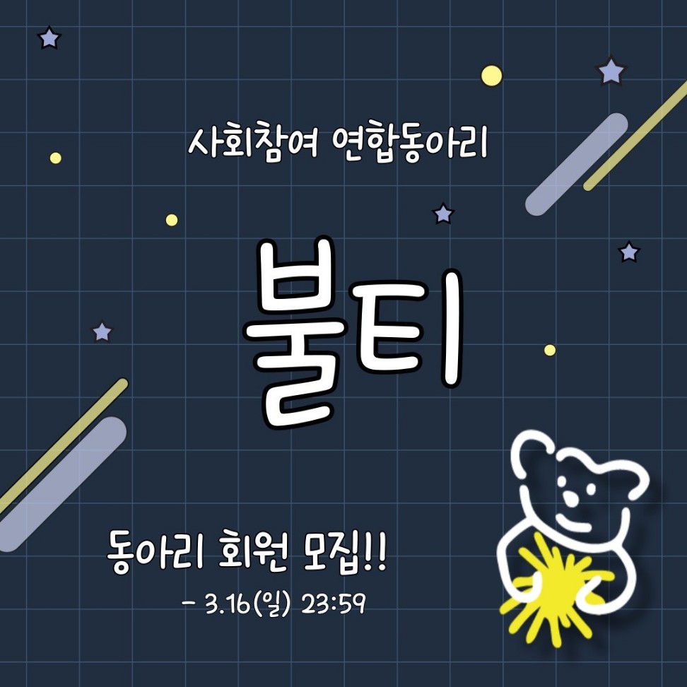 사회참여연합동아리 [불티]에서 동아리원을 모집합니다