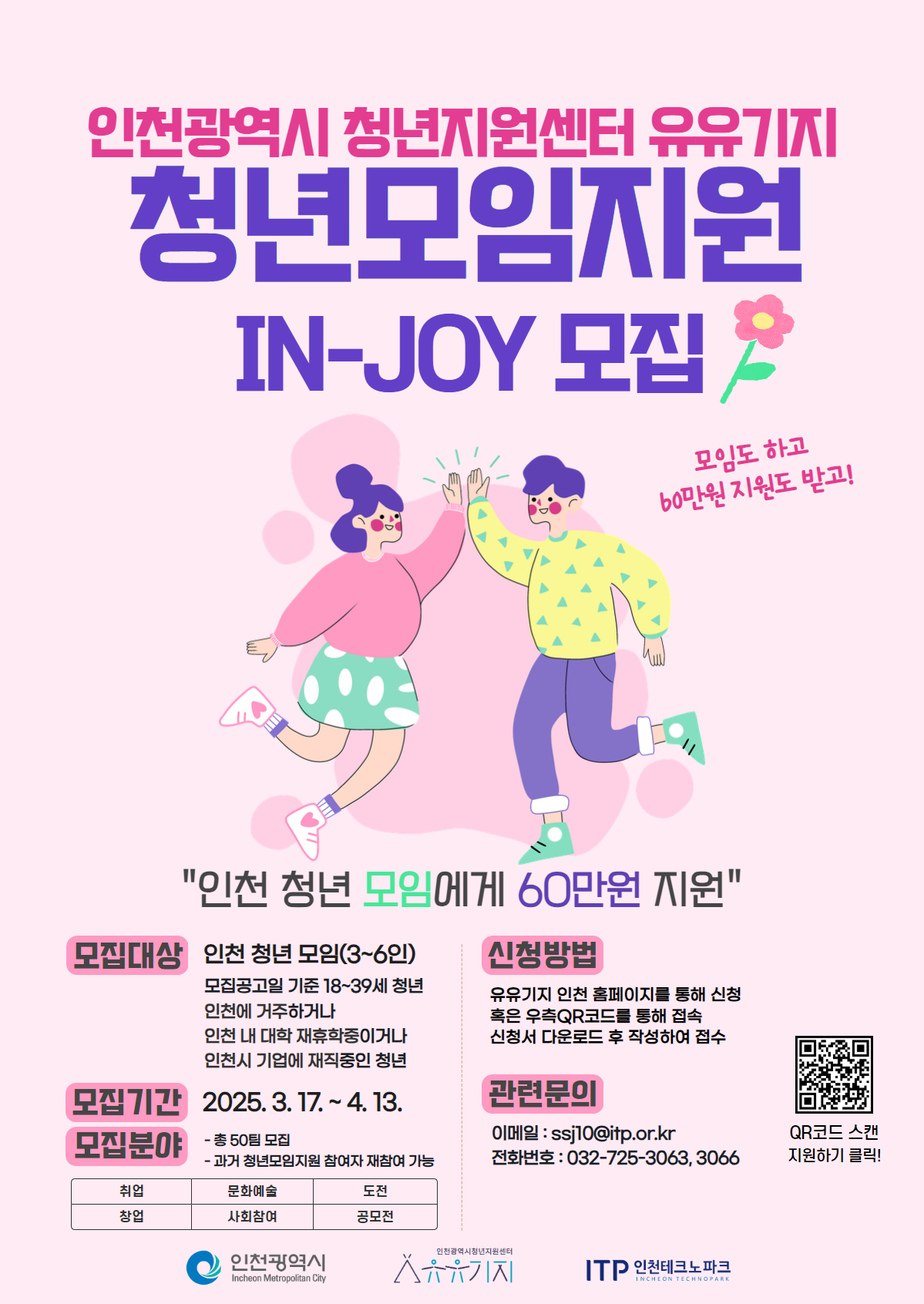 2025 인천 청년공간 유유기지 청년모임지원(IN-JOY) 참여 모임 모집