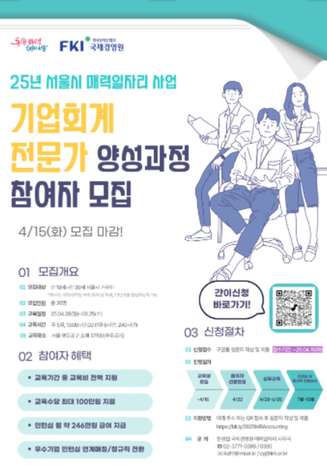 [한경협 국제경영원] 2025년 서울시 매력(舊.뉴딜)일자리 기업회계 전문가 양성과정 (~4/15)