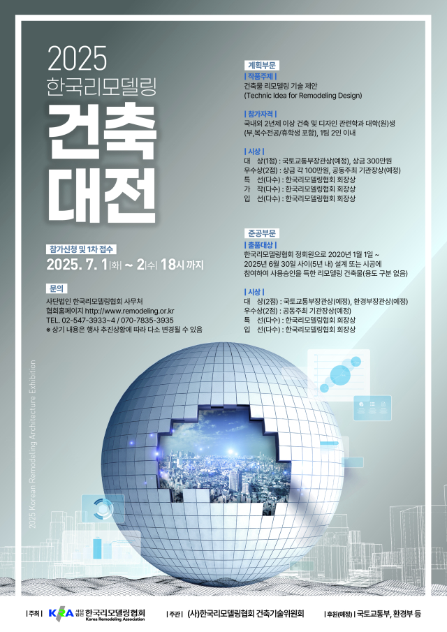 - 수상자 발표 및 시상 : 2025. 9. 4(목), 2025 리모델링의 날 총회 행사