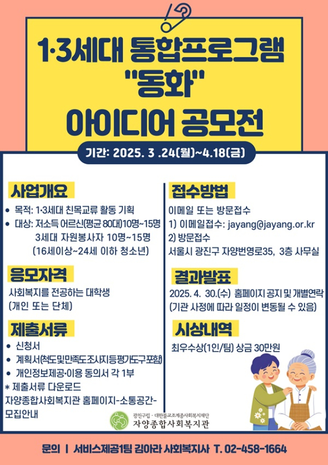 - 2025년 자양종합사회복지관 1∙3세대 통합프로그램 “동화(同化)” 아이디어 공모전
