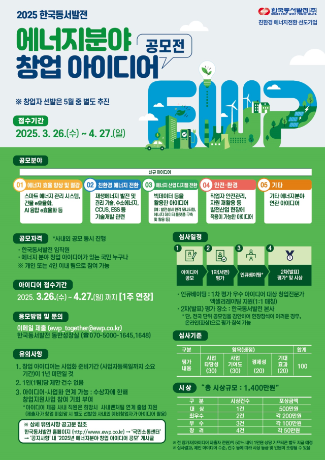 2025 한국동서발전 에너지분야 창업 아이디어 공모전 (연장)