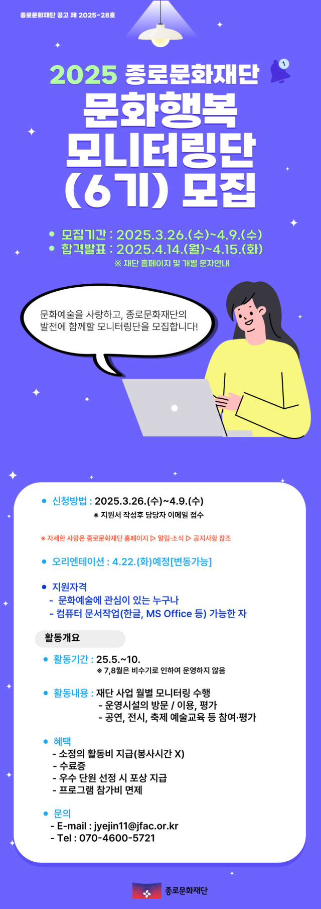 2025년 종로문화재단 문화행복 모니터링단(6기) 모집
