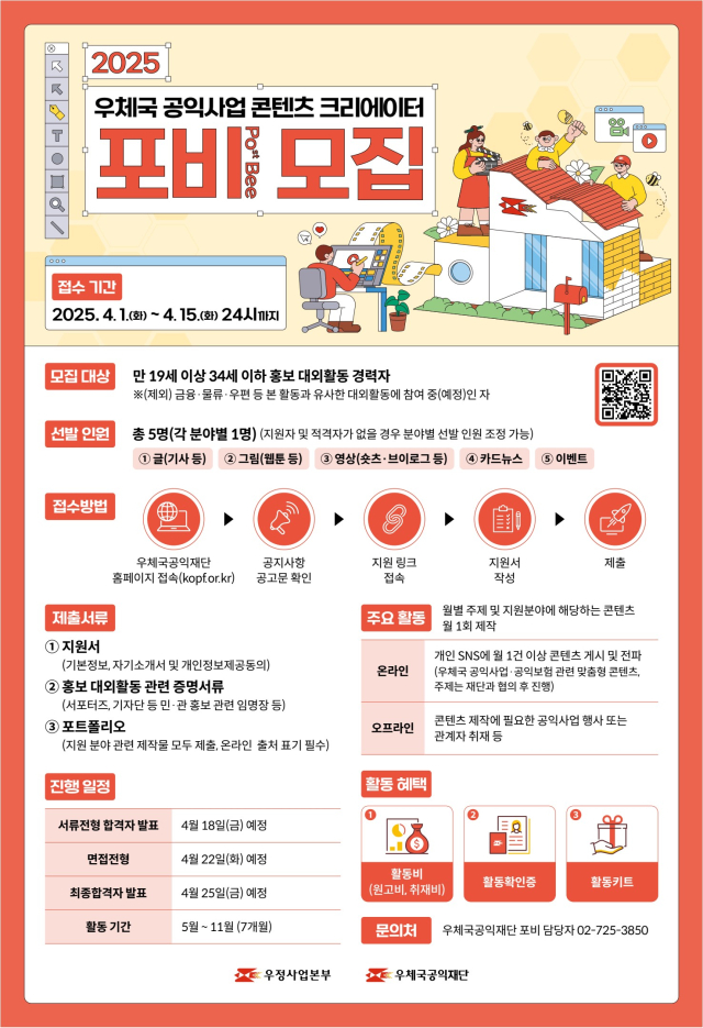 2025년 우체국 공익사업 콘텐츠 크리에이터 '포비(Post Bee)' 모집