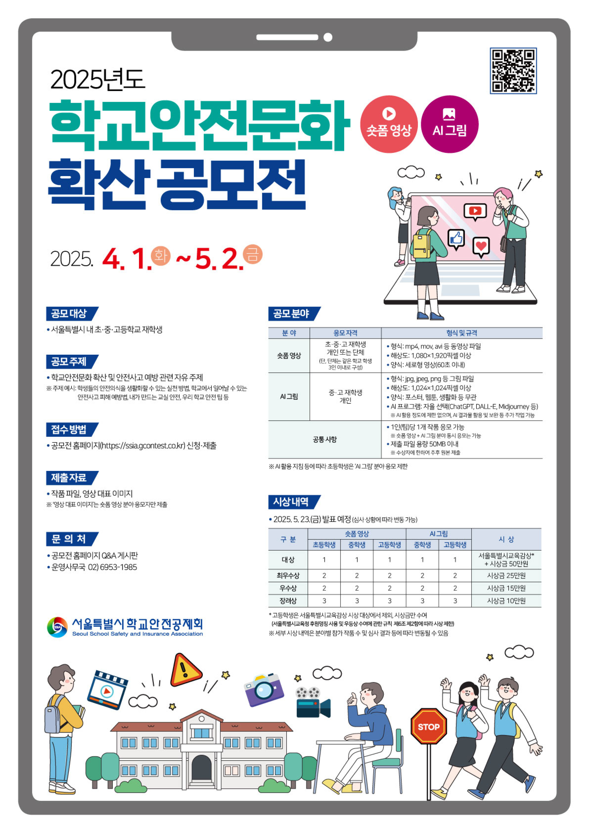 이 공모전은 학생들이 직접 ① 숏폼 영상과 ② AI 그림 등 창의적이고 개성 있는 작품을 만들어서 응모할 수 있습니다.