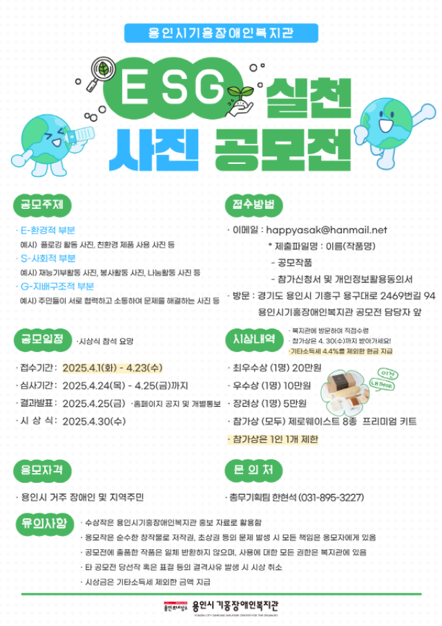- 제45회 장애인의 날 및 지구의 날 기념 ESG 실천 사진 공모전을 개최하오니