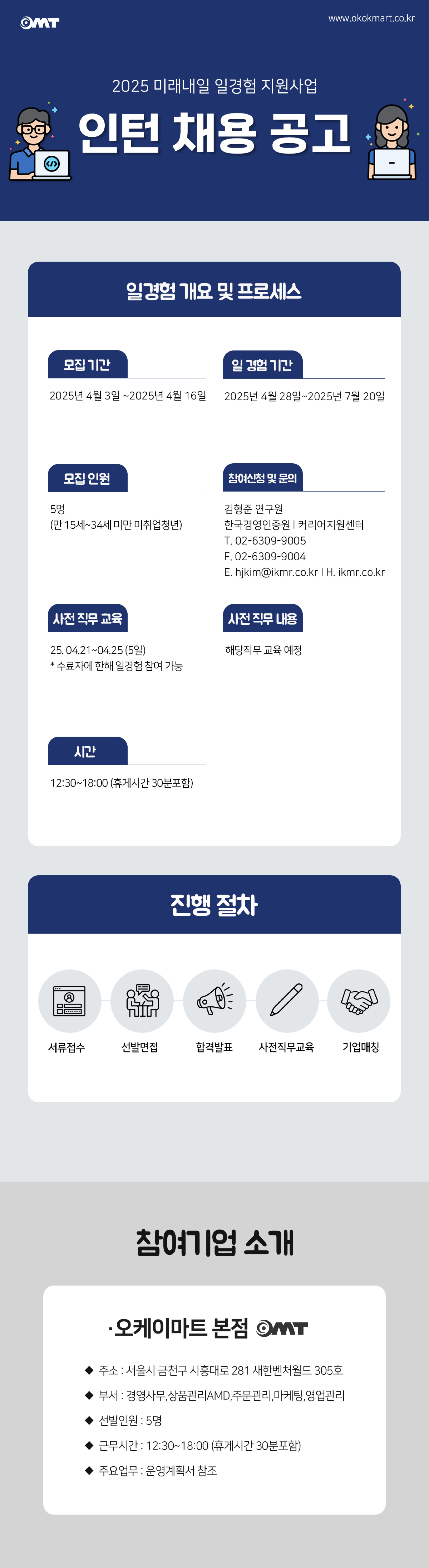 [오케이마트]미래내일일경험 인턴 모집(경영지원/영업지원사무관리/상품관리AMD/주문관리/마케팅)