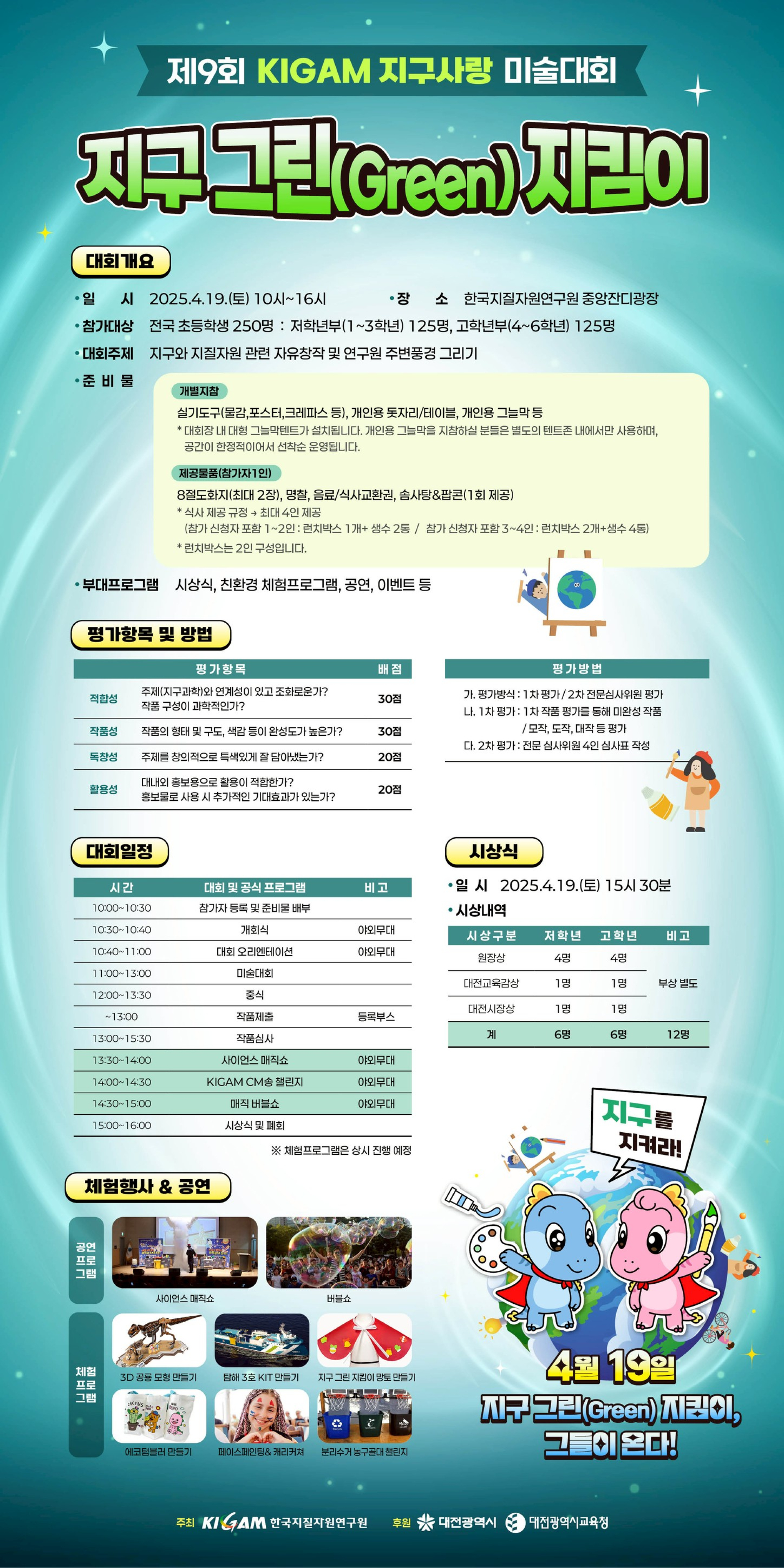 | 시상내역 | 원장상 저학년 4명/고학년 4명, 대전교육감상 저학년 1명/고학년 1명, 대전시장상 저학년 1명/고학년 1명 |