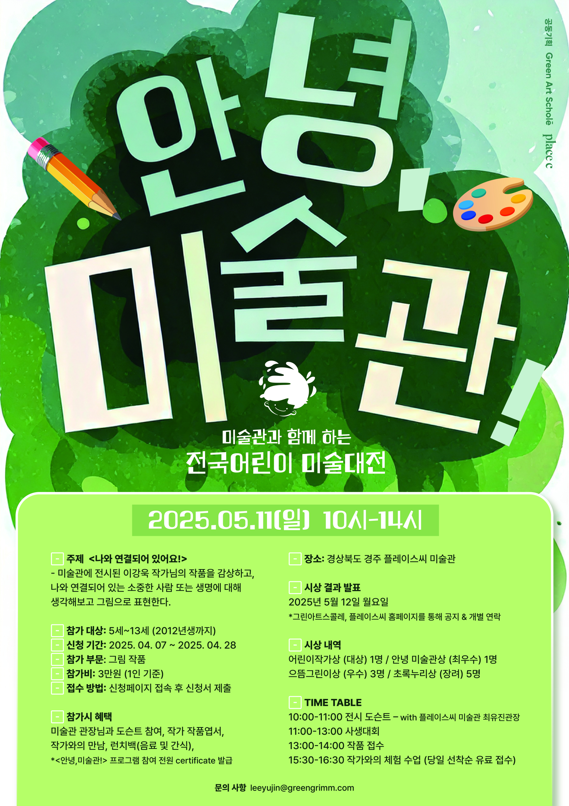 | 시상내역 | 어린이 작가상(대상,1인), 안녕미술관상(최우수,1인), 으뜸그린이상(우수,3인), 초록누리상(장려, 5인) |