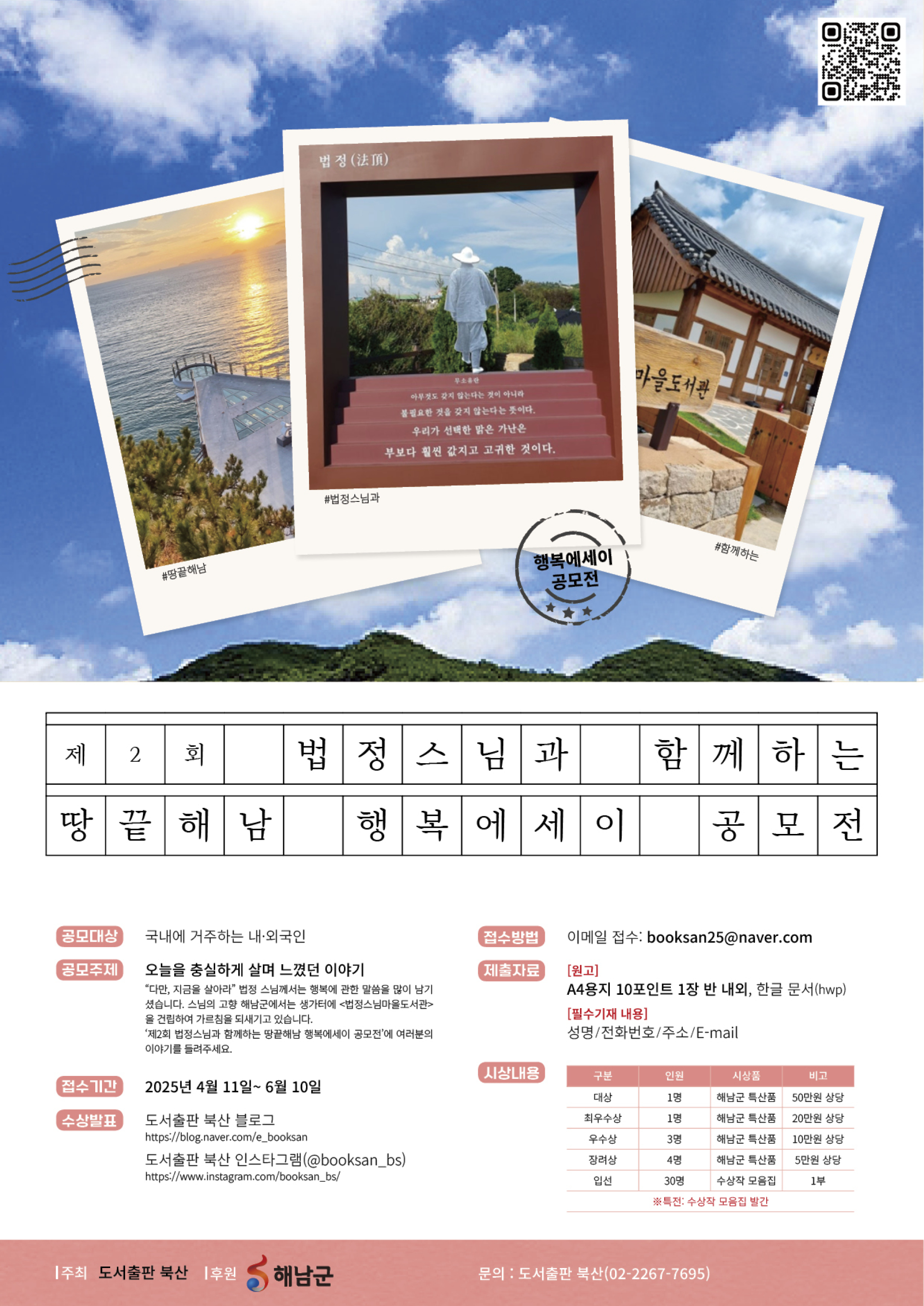 제2회 법정스님과 함께하는 땅끝해남 행복에세이 공모전