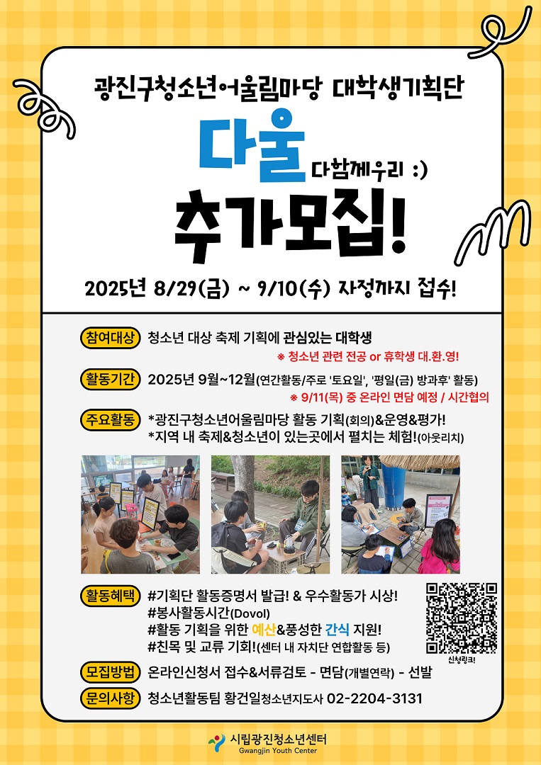 [공공기관] 광진구청소년어울림마당 '대학생기획단' 추가모집
