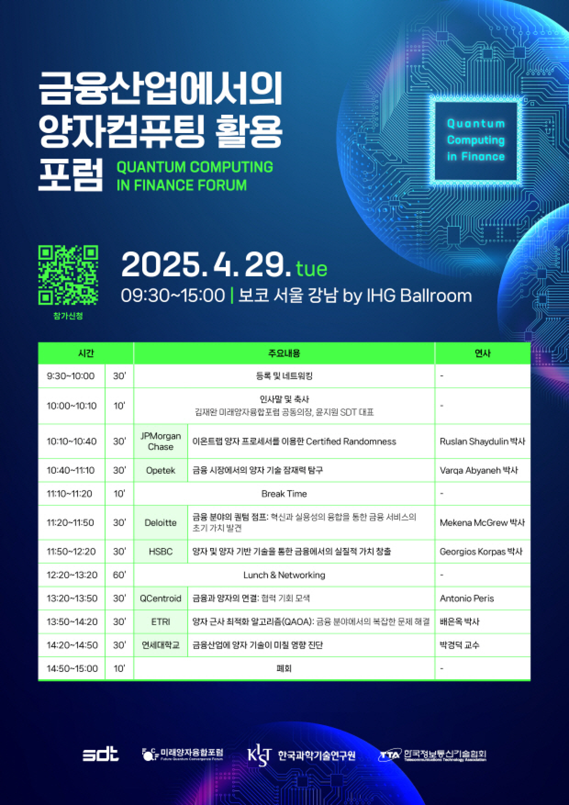 | 주최 | SDT, 미래양자융합포럼, KIST 한국과학기술연구원, TTA 한국정보통신기술협회 |