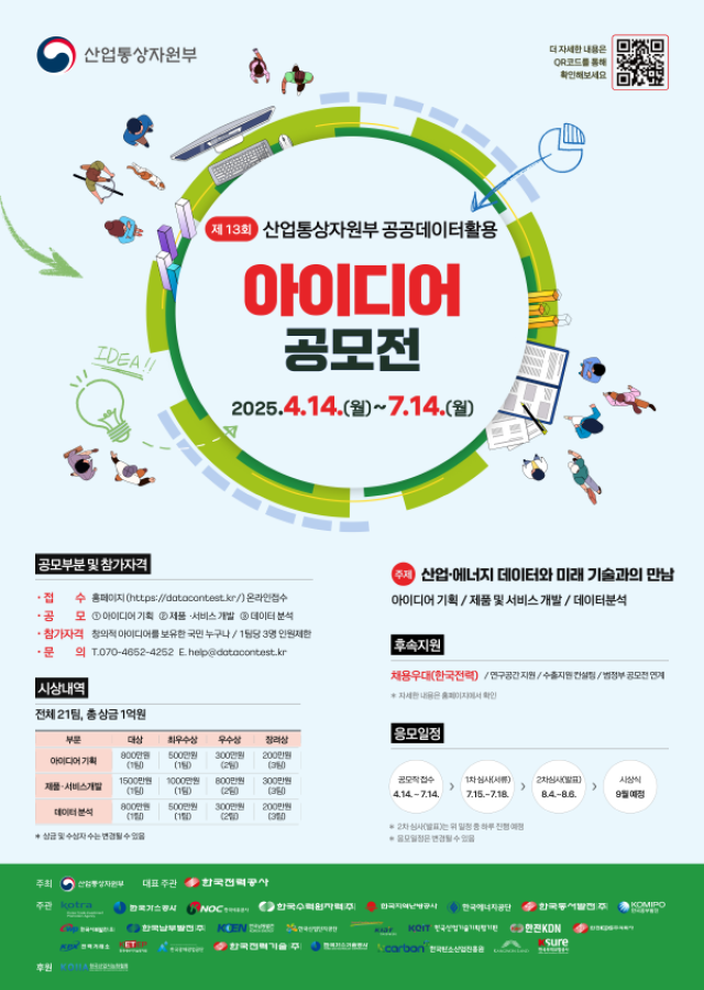 - 아이디어 기획 : 산업부 및 산업부 산하 공공기관 데이터를 활용하여 창의적인 아이디어를 기획한 국민 누구나 참여 가능
