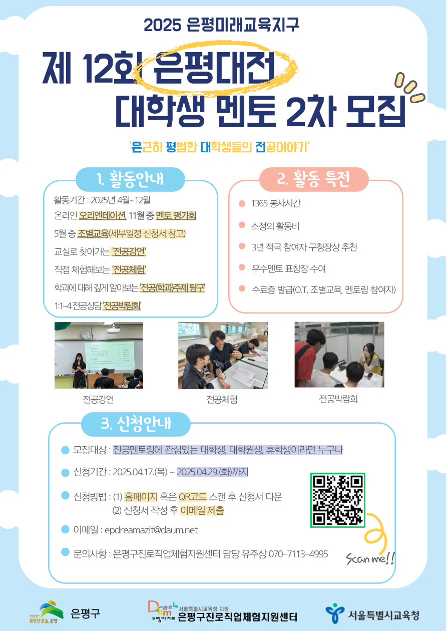 2025 은평미래교육지구 제 12회 「은평대전」대학생 멘토 모집