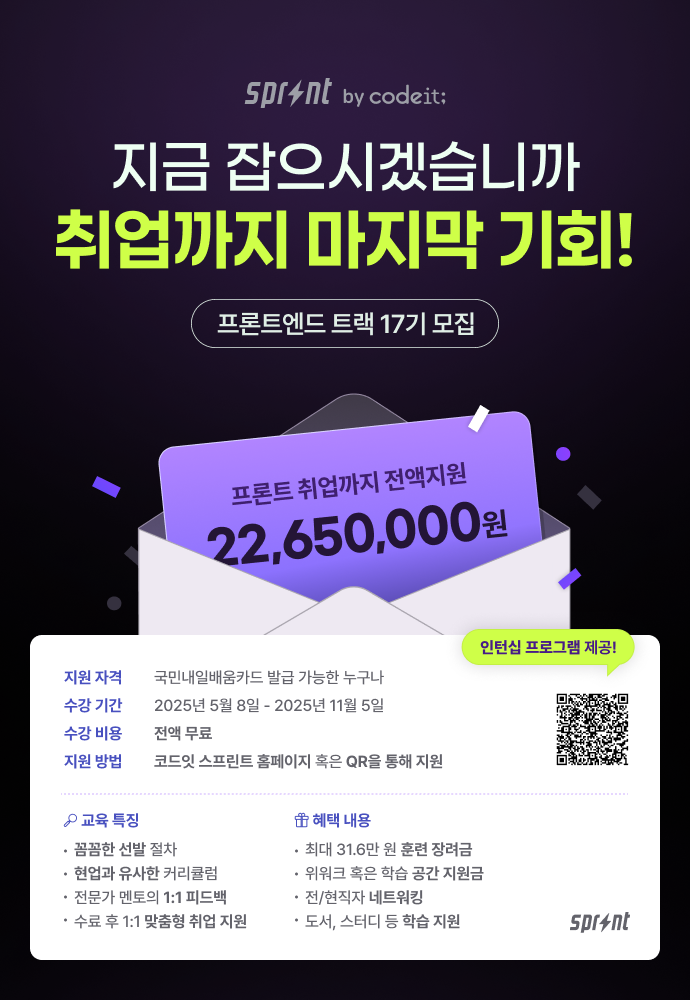 코드잇 스프린트 지금 모집 중 ➡️ https://code.it/53pSPp1
