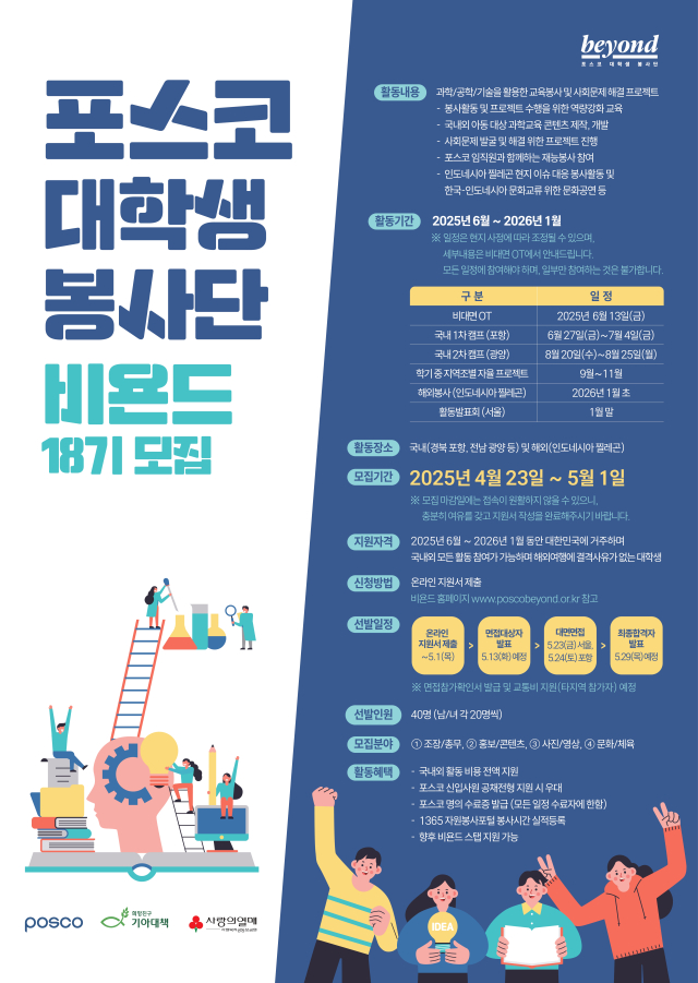 - POSCO와 함께하는 2025 포스코 대학생봉사단 비욘드 18기 모집
