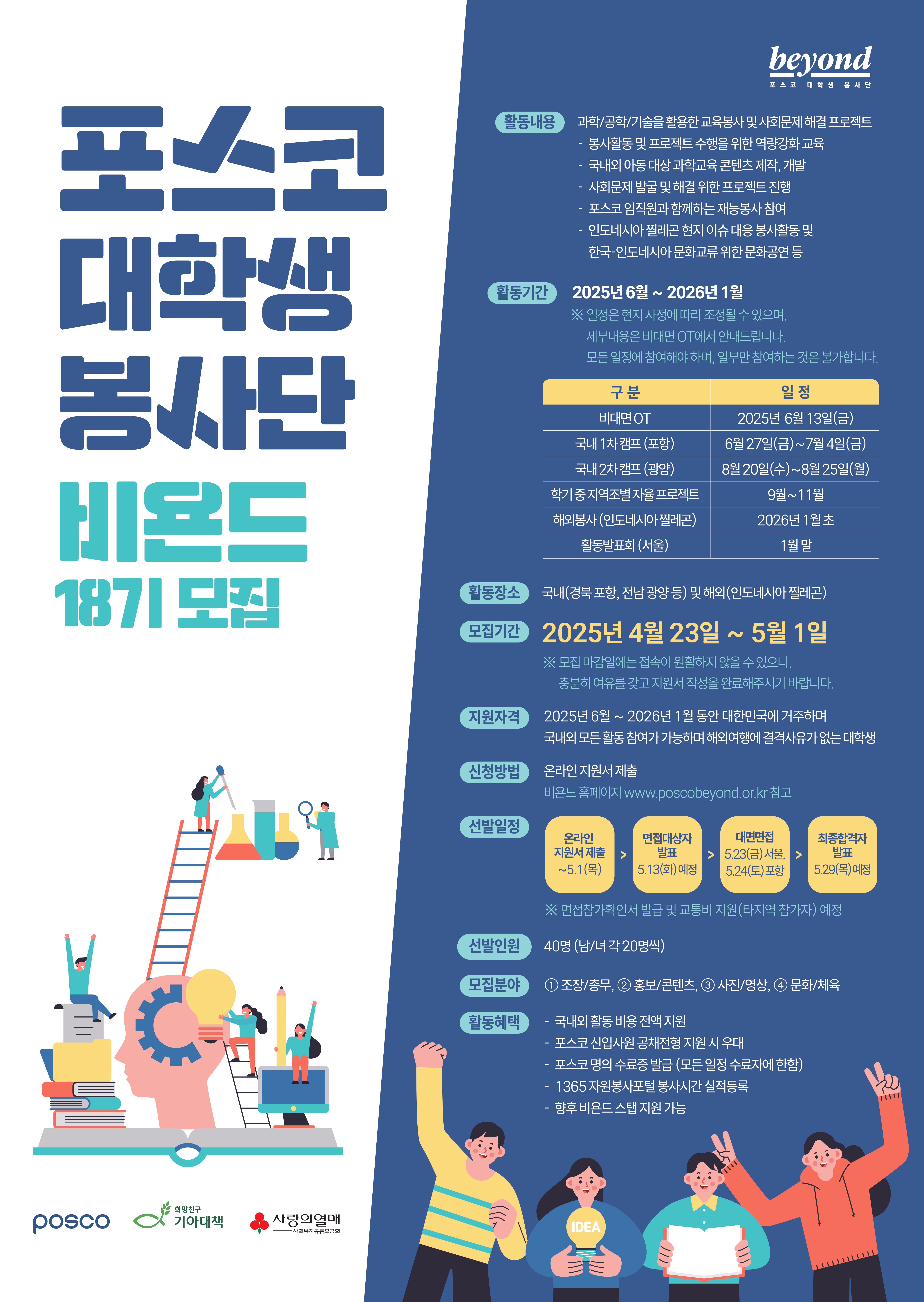 - POSCO와 함께하는 2025 포스코 대학생봉사단 비욘드 18기 모집