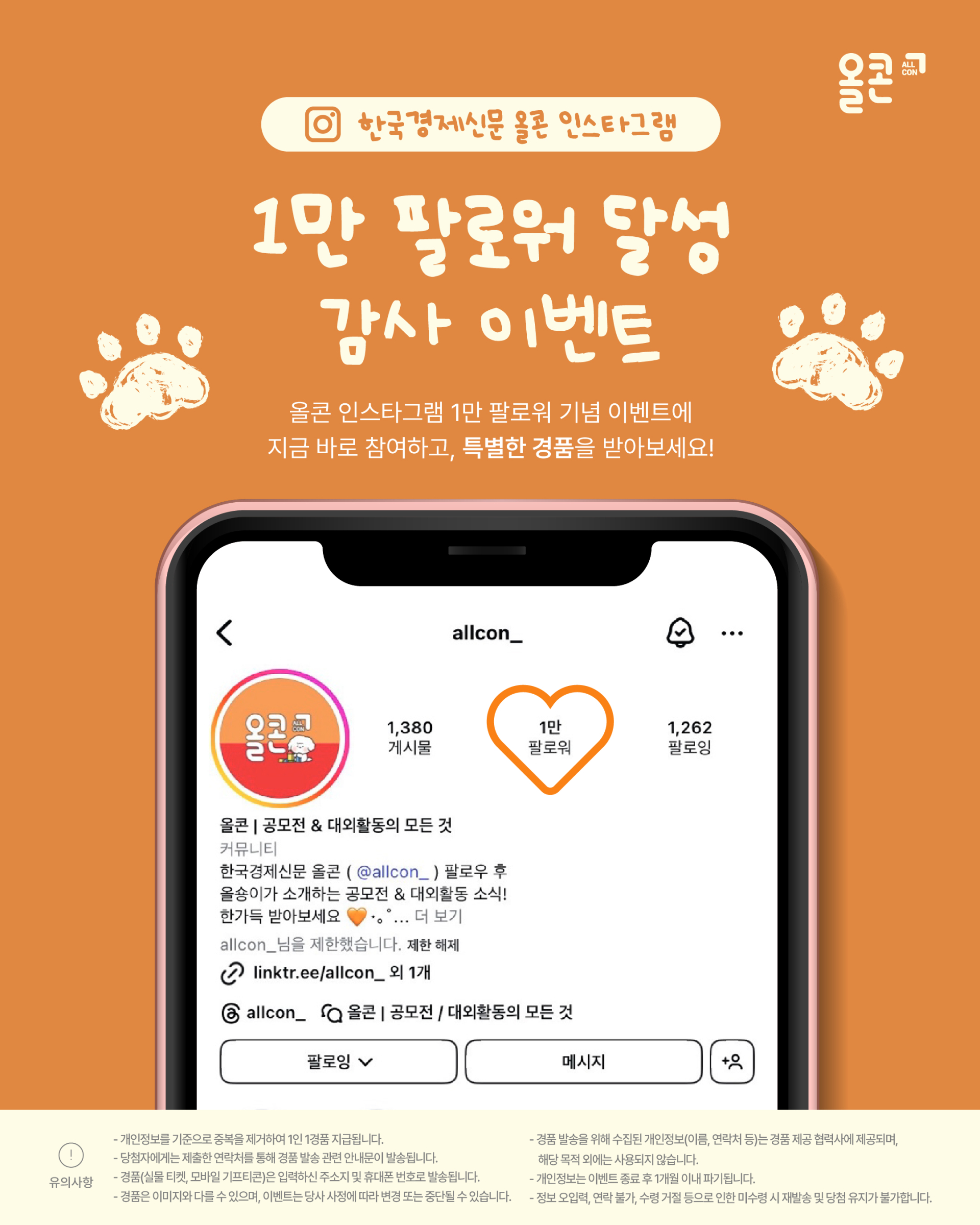 올콘 인스타그램 1만 팔로워 달성 감사 이벤트
