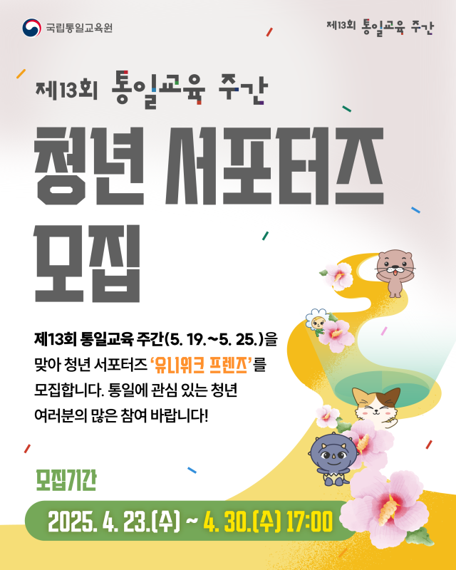 [국립통일교육원] 제13회 통일교육 주간 청년 서포터즈 모집