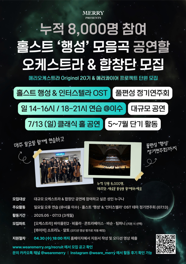 홀스트 ‘행성’ 전곡 연주할 오케스트라 단원 모집