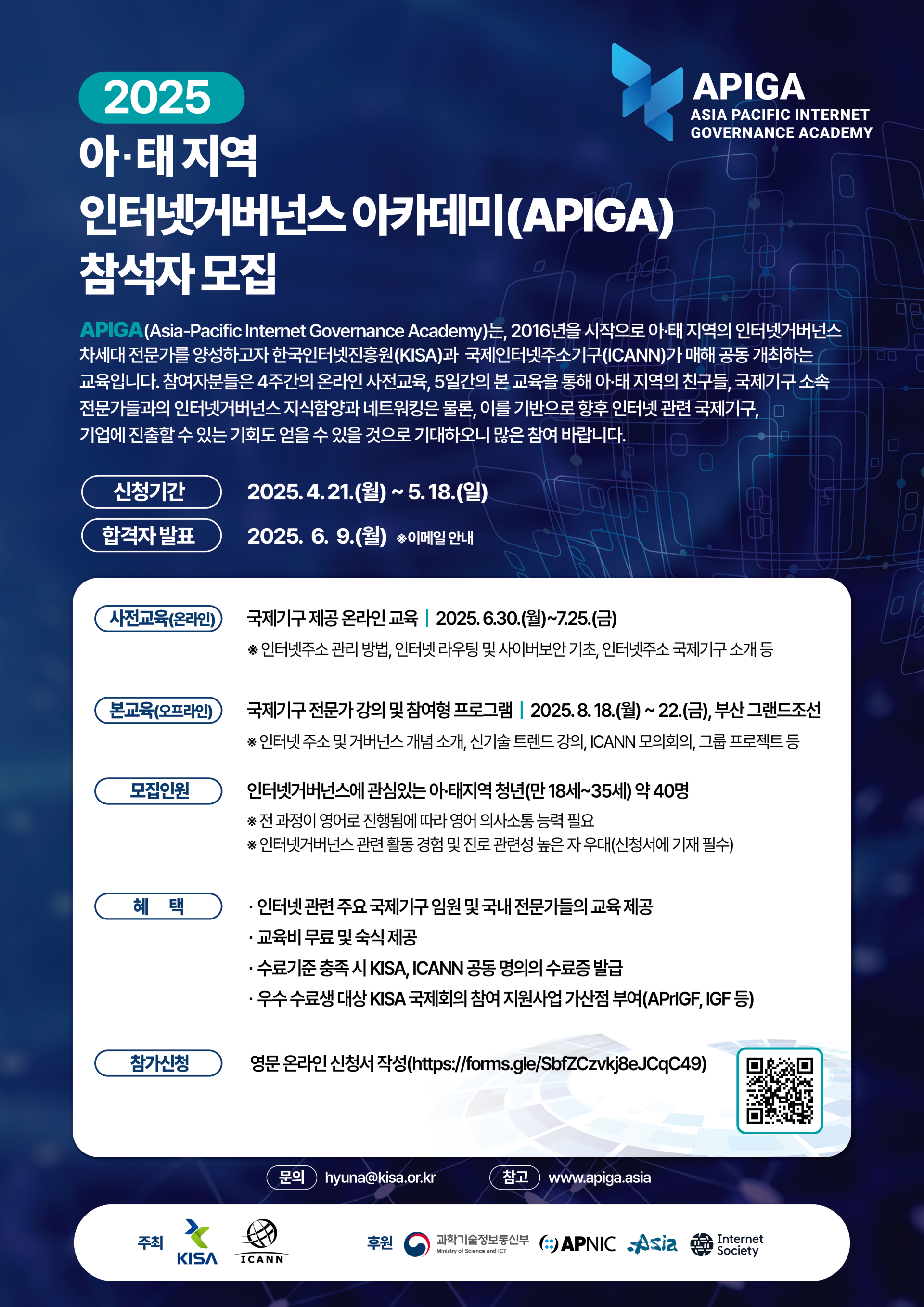 2025 아·태 지역 인터넷거버넌스 아카데미(APIGA)] 참석자 모집