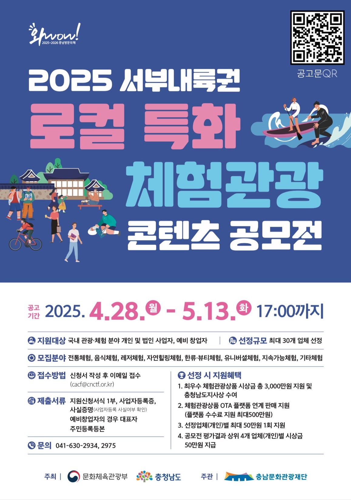 「2025 서부내륙권 로컬 특화 체험관광 콘텐츠 공모전」 추가공고