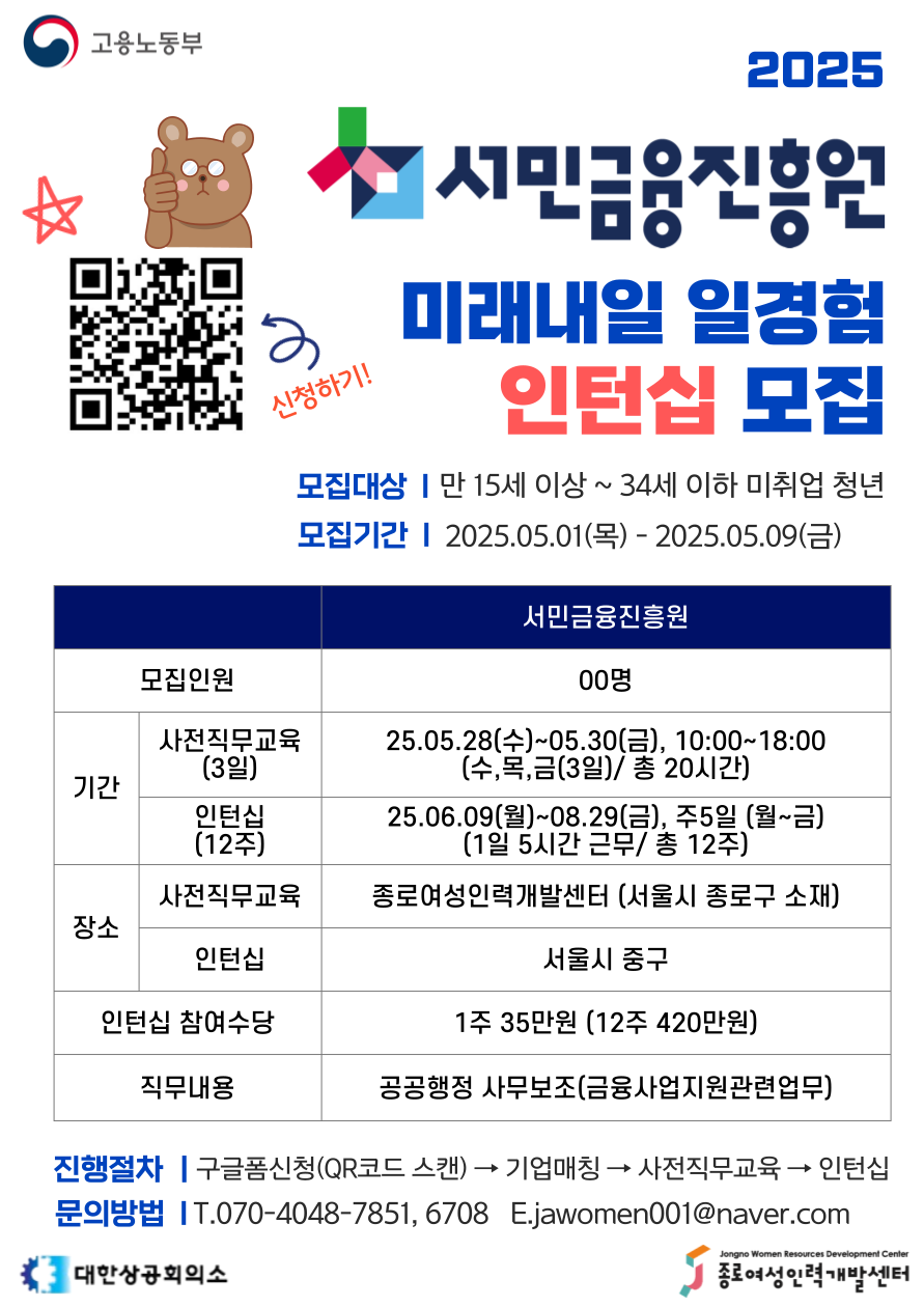 [2025 미래내일 일경험 인턴십_공공사무행정] 서민금융진흥원 참여자 모집
