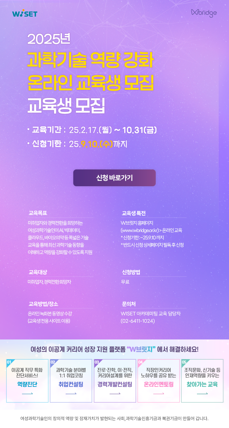 | 주관 | 한국여성과학기술인육성재단 WISET |