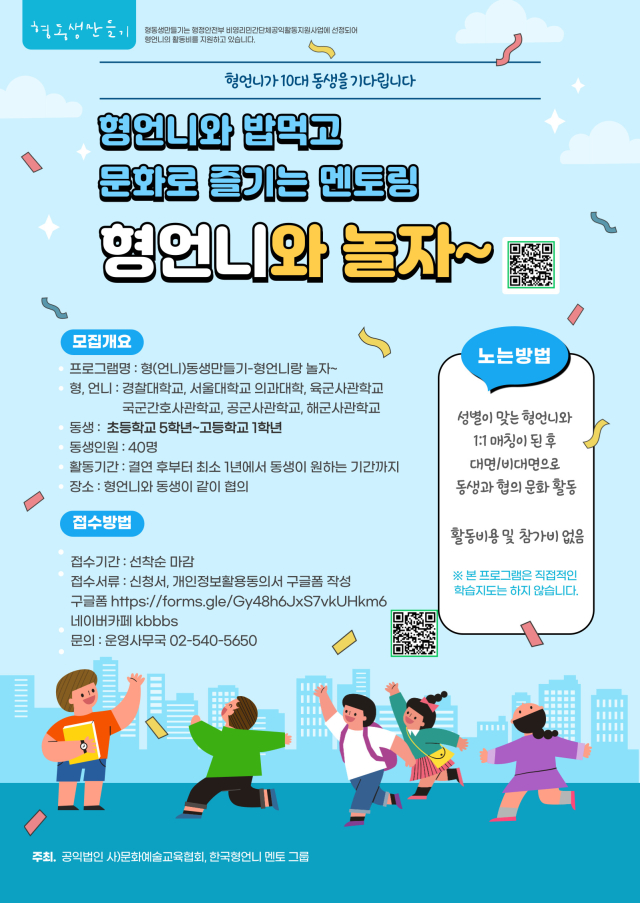 - 초등 5학년-고등 3학년. 형언니를 필요로 하는 모든 아동청소년