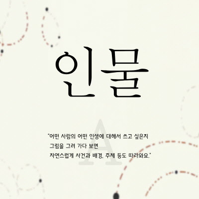 ▷ 인물을 잘 설정하면, 주제·배경·사건 등이 자연스럽게 따라옵니다.