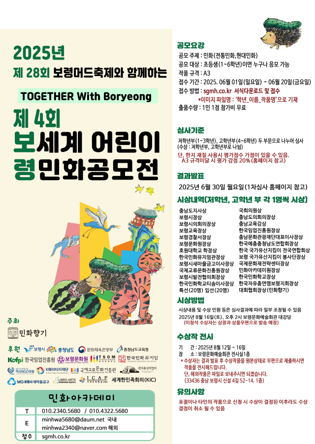 - 2025년 제28회보령머드축제와 함께하는 제4회 보령세계어린이 민화 공모전!