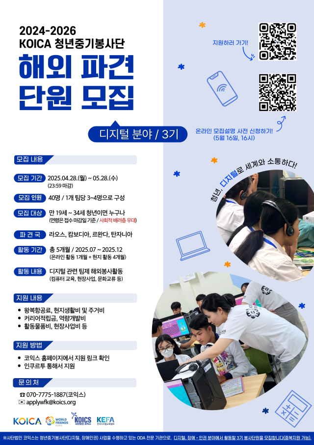 "KOICA-청년중기봉사단(디지털) 해외 봉사단원" 3기를 모집합니다.