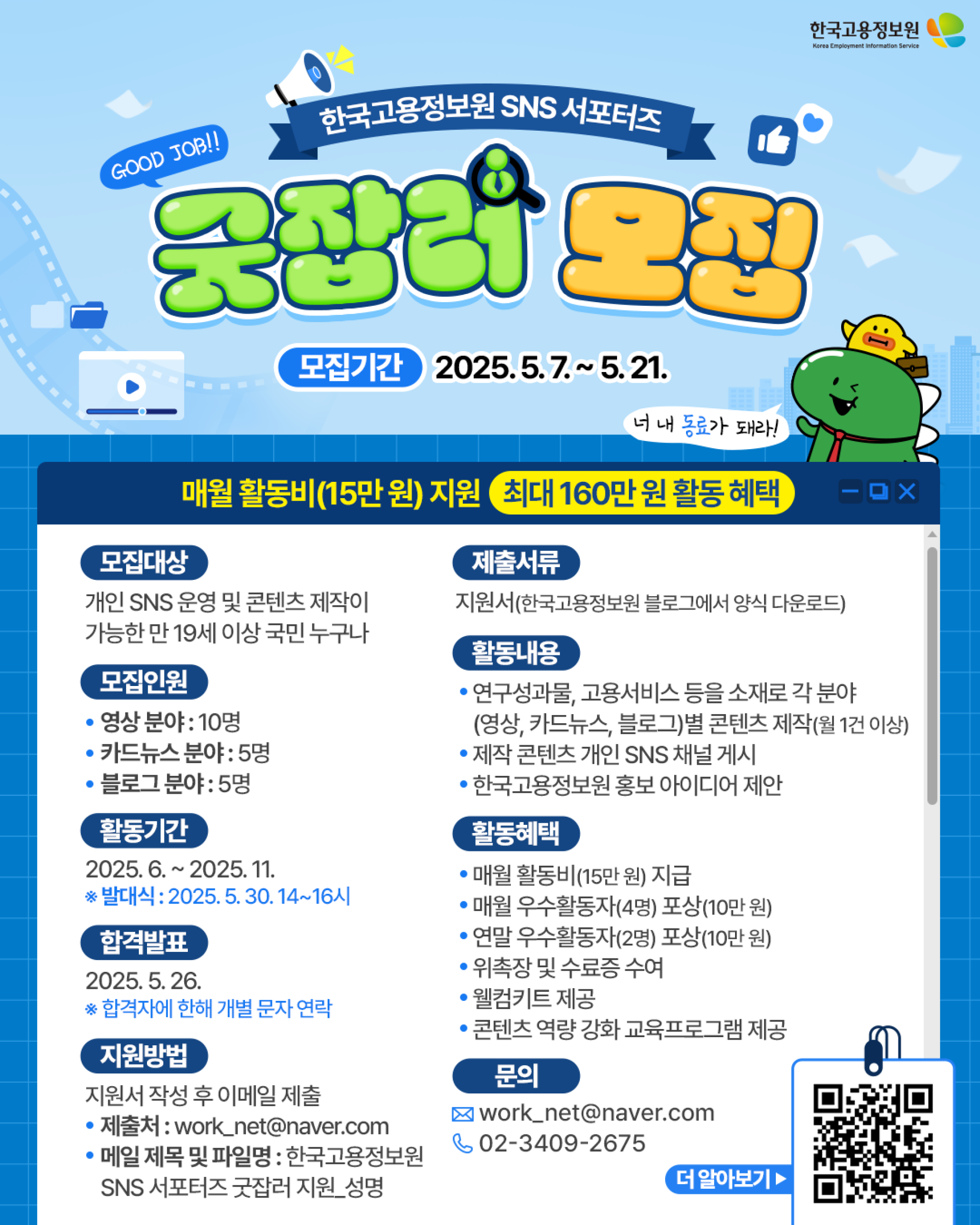 2025 한국고용정보원 SNS 서포터즈 '굿잡러' 모집