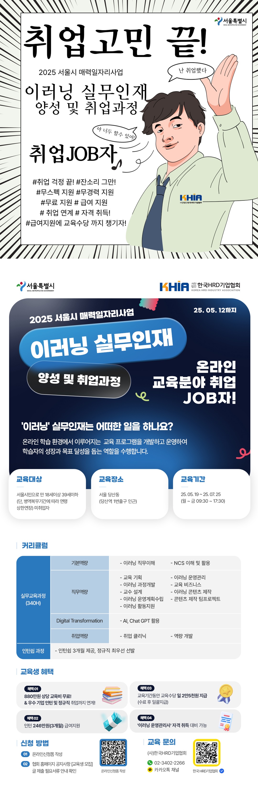 [서울시] 2025 서울시 매력일자리사업 <이러닝 실무인재 양성 및 취업과정> 참여자 모집