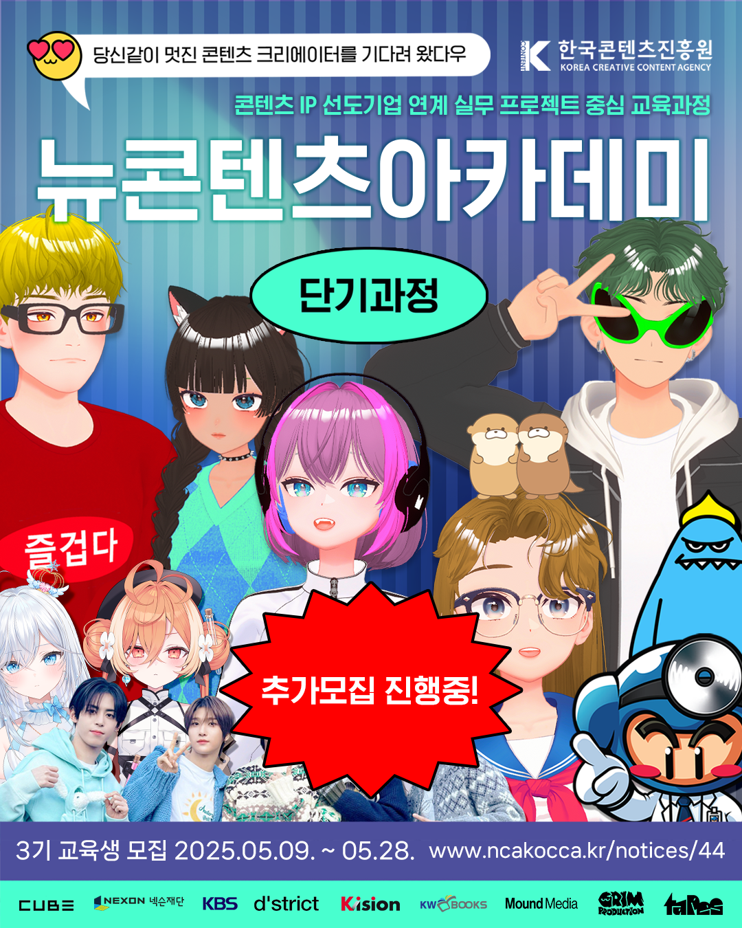 2025 뉴콘텐츠아카데미 단기 교육과정 3기 교육생을 추가모집합니다.