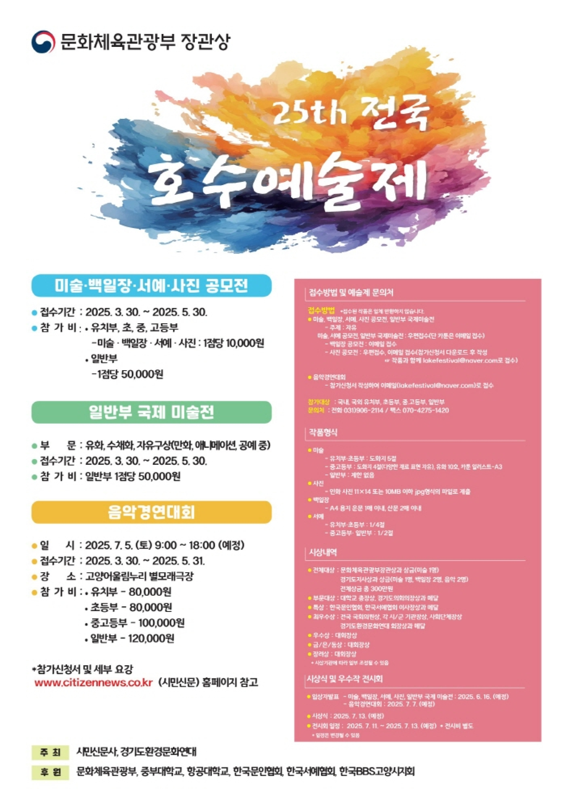 - 미술, 서예 공모전 : 우편접수 / 일러스트: 이메일 접수