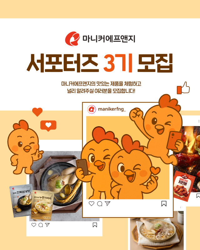 - 아래 링크를 통해 마니커에프앤지 서포터즈 신청서 작성하기!
