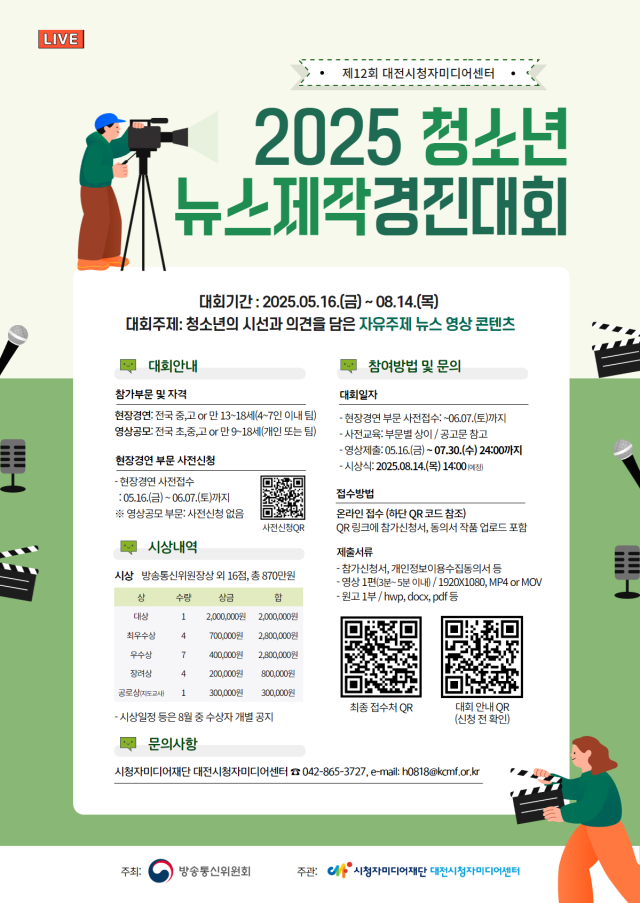 미디어 인재 양성을 위해 2025년 제12회 「청소년뉴스제작경진대회」를 개최합니다.