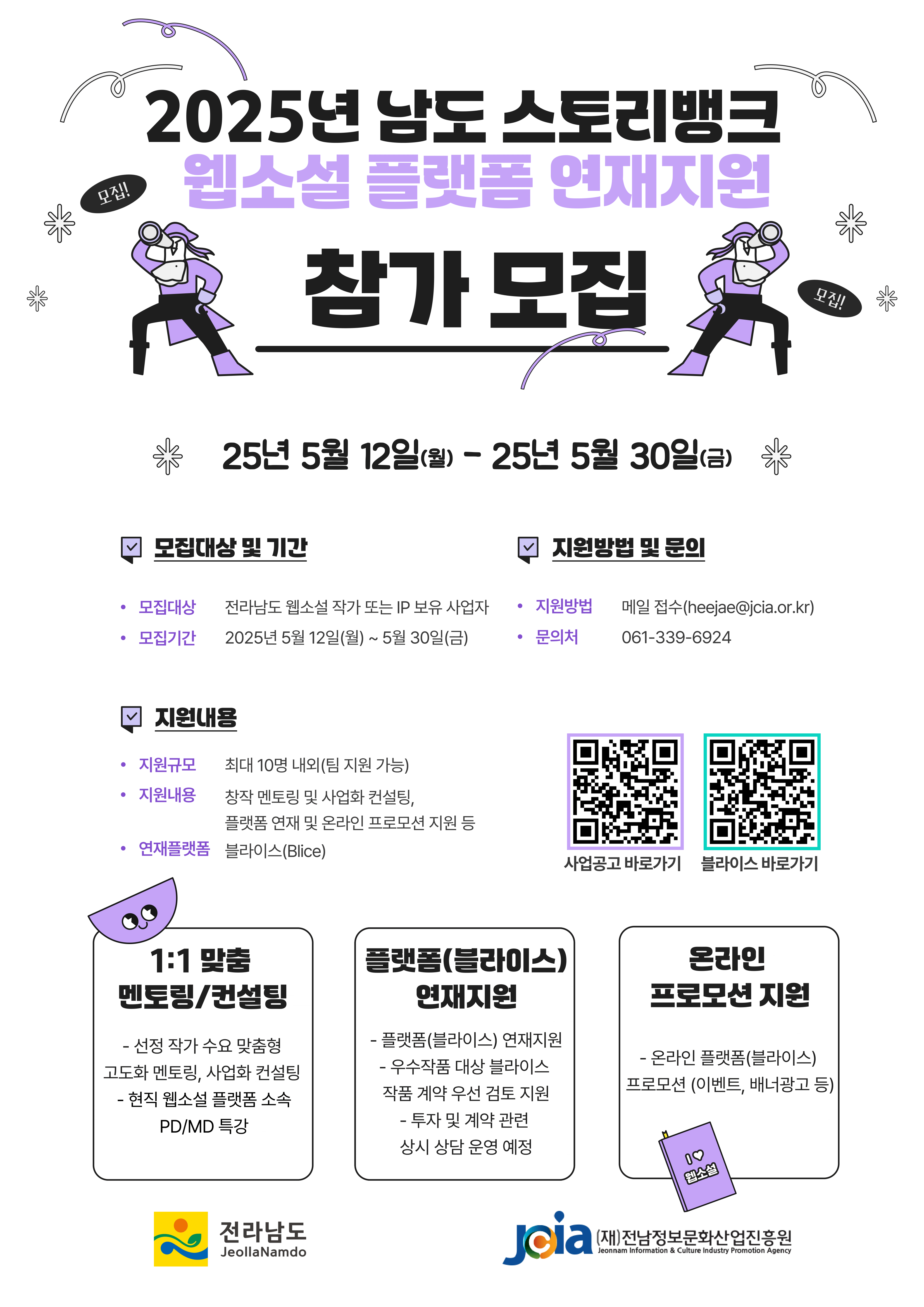 2025년 남도 스토리뱅크 웹소설 플랫폼 연재지원 참가 모집