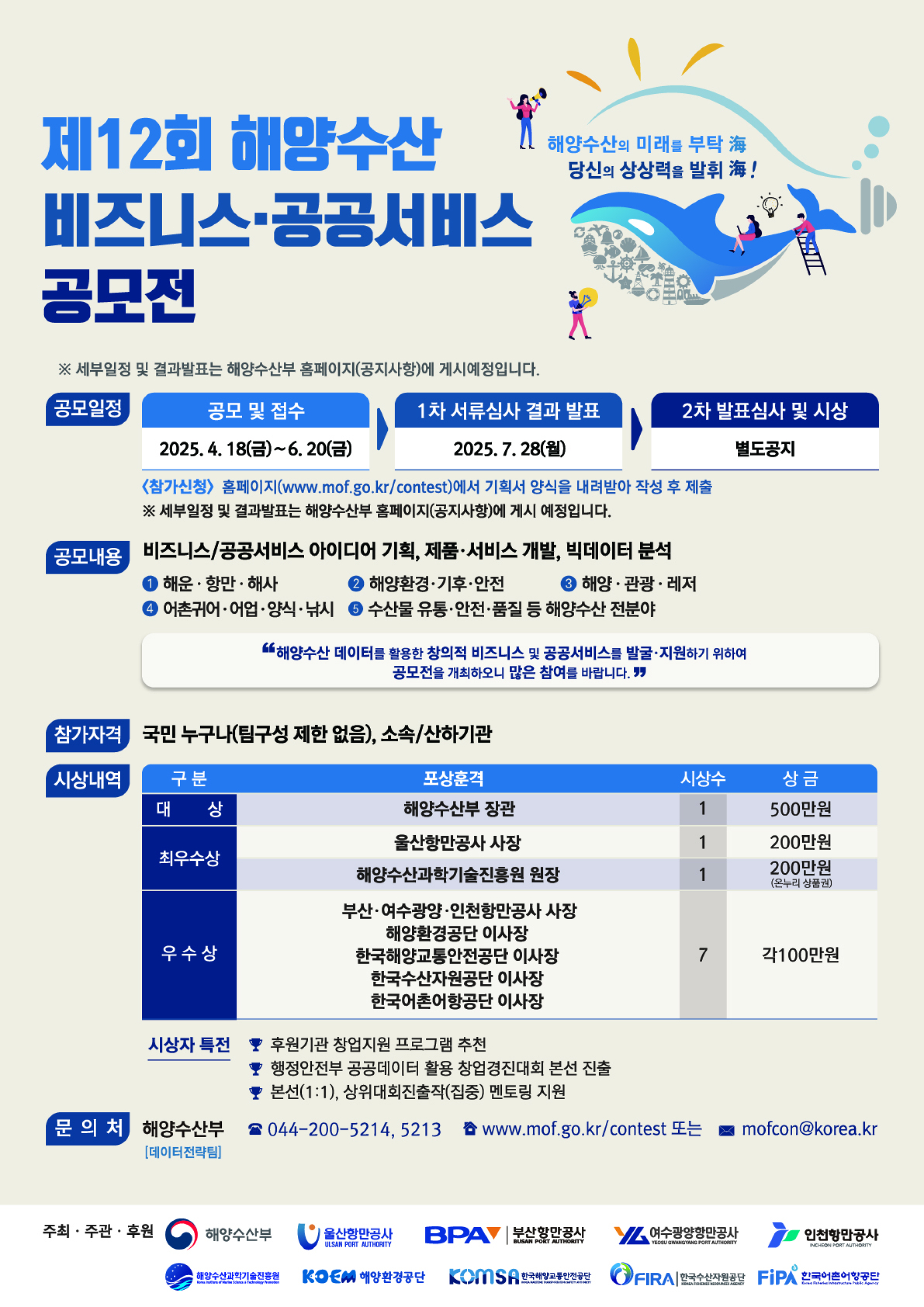 [해양수산부] 제 12회 해양수산 비즈니스・공공서비스 공모전 (~6/20)