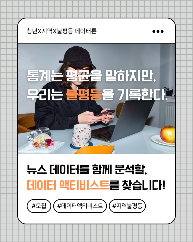 [청년X지역X불평등 데이터톤] '뉴스에서 읽은 불평등, 데이터로 다시 쓰다' 모집 안내