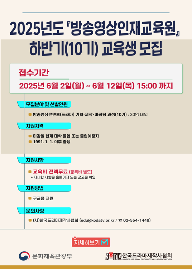 2025년도 『방송영상인재교육원』 하반기(10기) 교육생 모집!