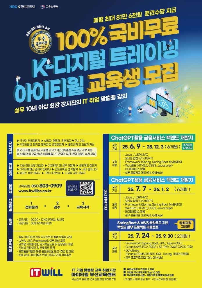 [★고용노동부 5년인증 우수훈련기관] 전액국비지원 - 5월 개발자 취업반 모집 (부산 it 학원, 부산 it 교육, 부산 자바 학원, 부산 개발자 학원, 부산 컴퓨터 학원, 부산 코딩 학원)