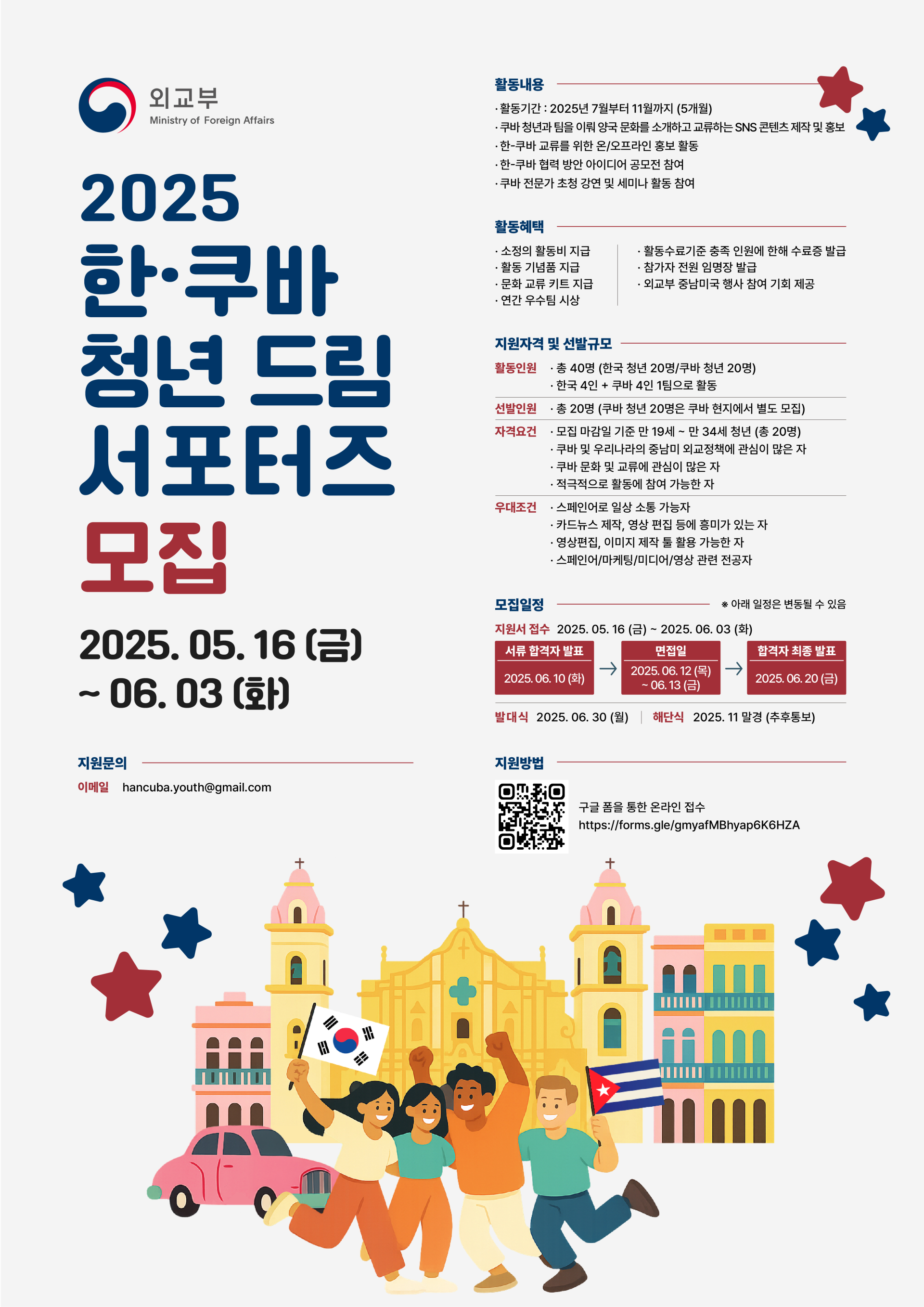 한-쿠바 청년드림 서포터즈모집 (~6/03(화) 마감)