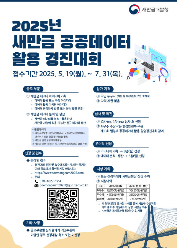 | 시상내역 | 부문별 최우수, 우수상, 장려상 선정자에게 상장, 시상금 수여 |